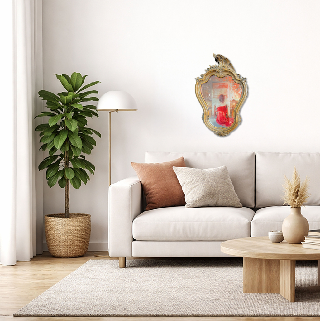 Impression directe sur plexiglas en transparence posée sur miroir ancien et travaillée